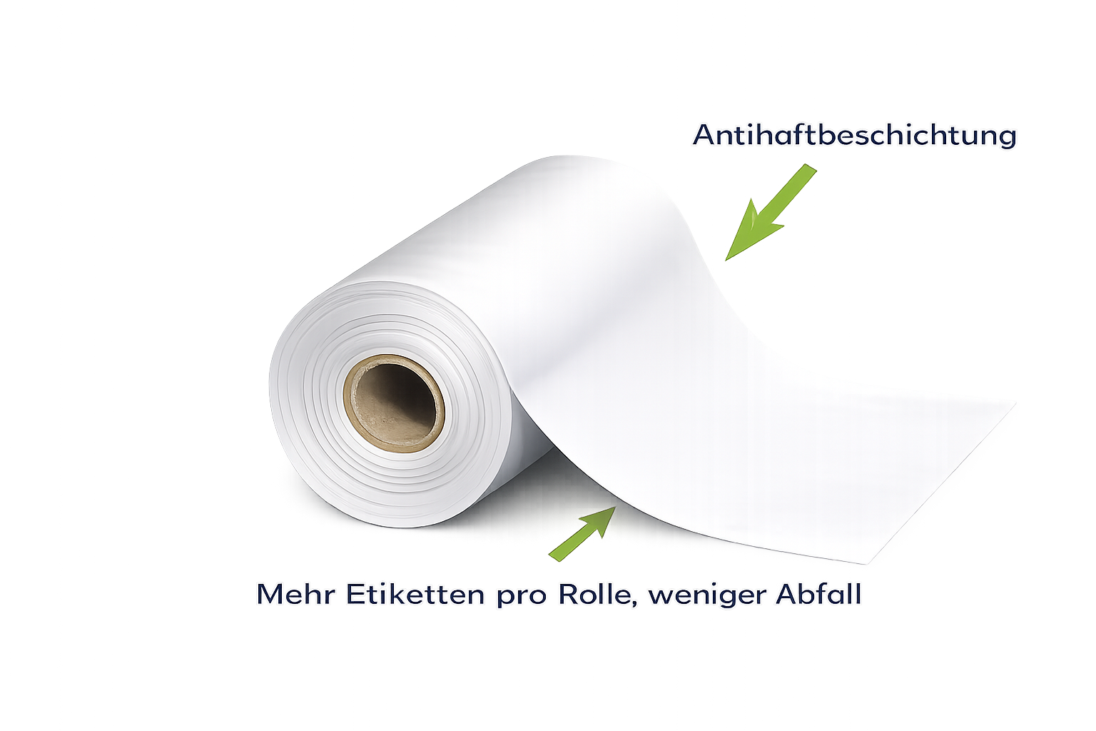 Linerless Etiketten sind eine effiziente und nachhaltigere Etikettenlösung ohne Trägermaterial. Sie rollen dank einer Klebeschicht auf der einen Seite und einer Trennschicht auf der anderen Seite gleichmäßig ab. Mit einem Linerless-Drucker werden sie gedruckt und direkt auf Länge geschnitten – ideal bei variablen Etikettenlängen. Achtung: Nicht jeder Etikettendrucker ist für Linerless Etiketten geeignet. Wir beraten Sie gerne.